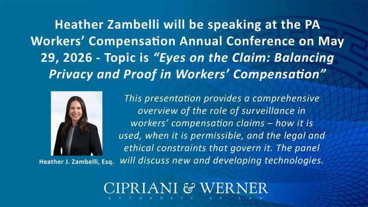 Heather Zambelli will be speaking at the PA Workers’ Compensation Annual Conference on May 29, 2026