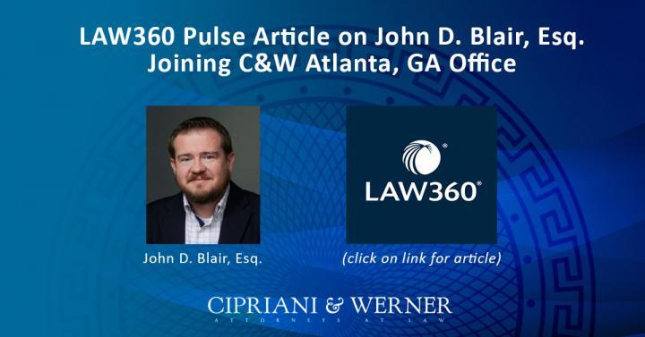 LAW360 Pulse Article on John D. Blair, Esq. Joining C&W Atlanta, GA Office