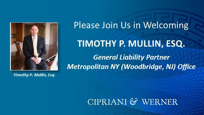 Timothy Mullin, Esq. Joins C&W as Partner in Metro NY (Woodbridge, NJ) Office