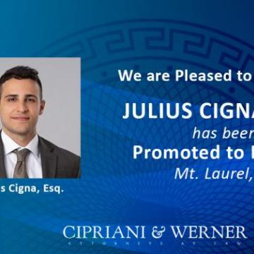 Julius Cigna Elevated to Partner in Mt. Laurel Office