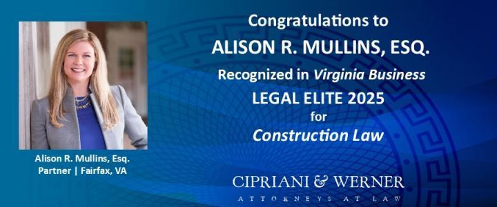 Attorney Mullins Recognized in Virginia Business Legal Elite 2025 for Construction Law