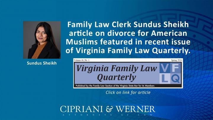 Family Law Clerk Sundus Sheikh article featured in recent issue of Virginia Family Law Quarterly.